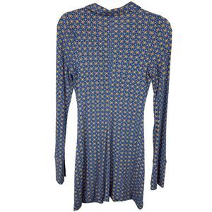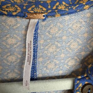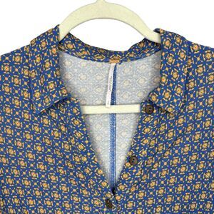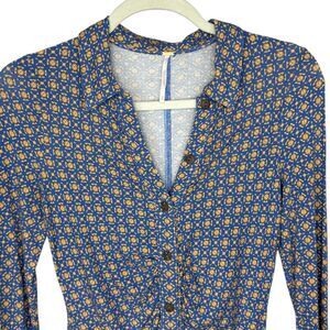 Free People Blue & peach patterned cinched long sleeve button dress Size Small