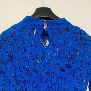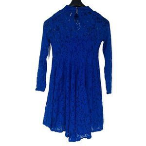 Free People Blue Crochet Long Sleeve Hi Neck Dress Size Small