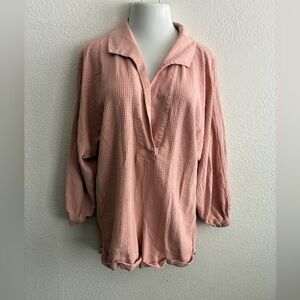 Chic blush romper by Free People. Long sleeves with oversized design. Perfect for casual outings.