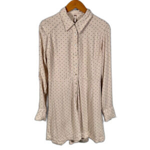 Free People Blush This Town Polka Dot Long Sleeve Buttondown Dress Size Medium