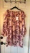 Elegant blush dress with purple floral design. Features ruffled sleeves and deep V-neck. Ideal for stylish outings.