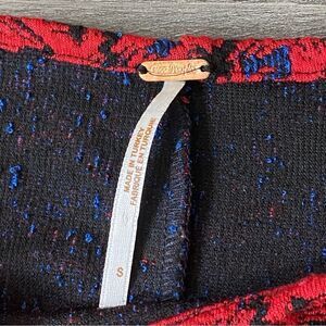 This jacquard bodycon dress from Free People has such a flattering fit. The material is a thick weight so it hugs the body only accentuating the curves you want to show off. Square neckline + voluminous peasant sleeves elevate the style to the next level. Deep red and black print with touches of royal blue. Size small with nice stretch. Please see photo section for approximate flat measurements + my model stats for fit reference. Material: 75% polyester, 23% viscose, 2% elastane.