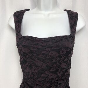 Free People Bodycon Mini Dress Sm Black Burgundy Floral Ruched Romantic Whimsy