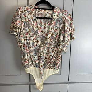 Free People Bodysuit Blouse Floral “Call Me Later “ Paisley Peasant Cottagecore