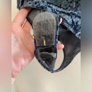 Disco vibes! Beautiful velvet bodysuit. Elevate your jeans style, or wear for a special occasion event. Stretchy Ptp 18”. New with sanitary liner. Has a grayish blue color. Questions? Leave a comment below!