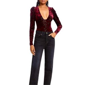 Free People Bodysuit Intimately Free Magic Hour Velvet Maroon Small