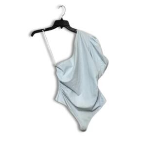 Free People Bodysuit Puff Sleeves One Shoulder Stretch Comfortable Blue W L NWOT