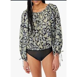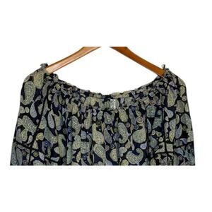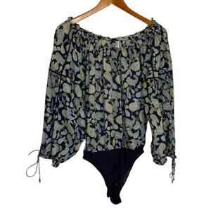 Free People Bodysuit Women XS Navy Blue Sundown Paisley Boho Peasant Festival