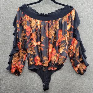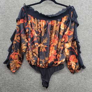 Free People Bodysuit Women's Small Midnight Combo Off Shoulder NWT MSRP $128