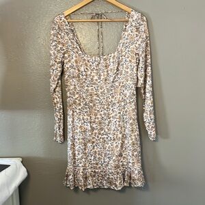 Free People Boheme Ivory Floral Mini Dress NWT Size 10 Long Sleeve
