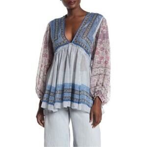Free People Bohemian Aliyah Printed Long Sleeve Sheer Tunic Top (S)