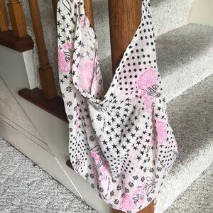 Great pre loved condition,reusable bag, eco friendly, boho inspired like print with Free People logo throughout, holds a lot of stuff great for a beach day ,cloth material, no holes or snags , please use pics as part of description