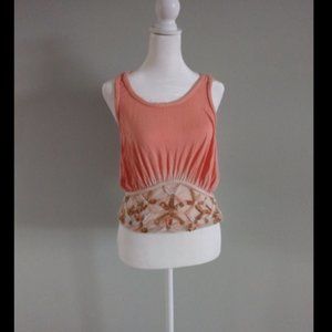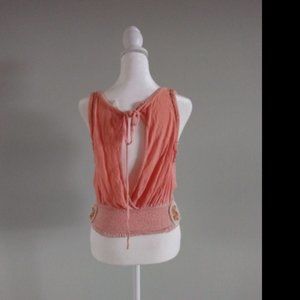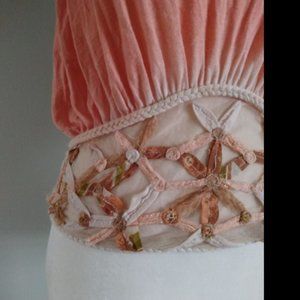 Gently used condition. Slight distressed detailing. I love the floral and braided details on the bottom of the tank top. Smocked detailing in the back. Size M