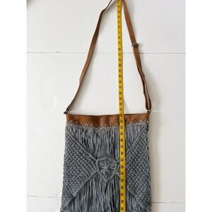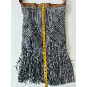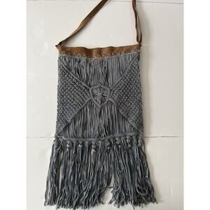 Free People Bohemian Fringe Bag Cow Suede Silver Metal Hippie Western Cowgirl