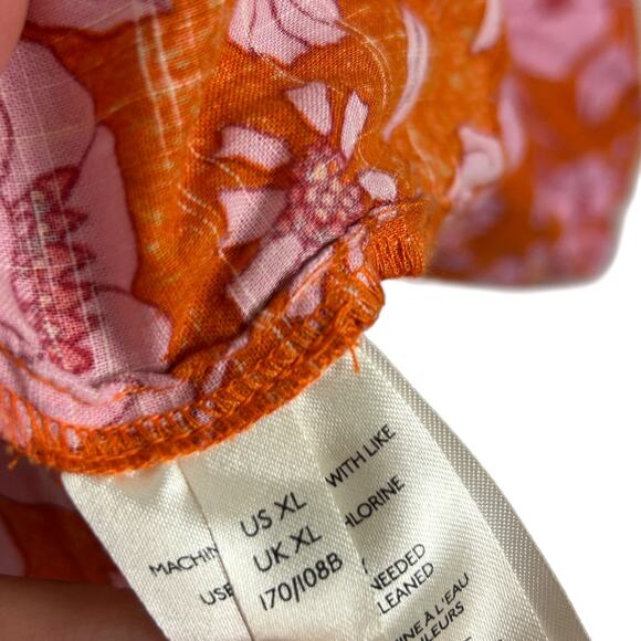 Free People Bohemian Pink Orange Floral Balloon Sleeve Blouse XL