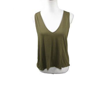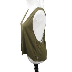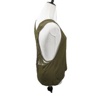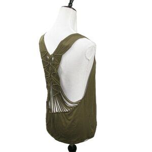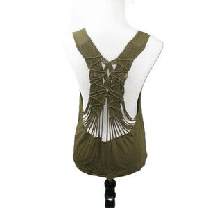 Free People Boho Army Green Crochet Back Knit Tank Top Size Small