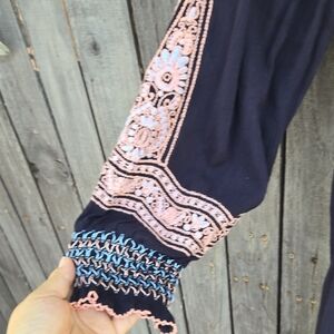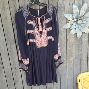 Chic black dress featuring intricate embroidery. Perfect for a boho look.