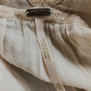 This light blush top features a breezy flowy cut, an open back, and black/cream/gold/white beading and sequins on the front.