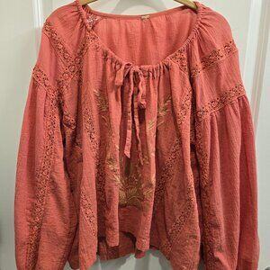 Free People Boho Chic Embroidered Blouse