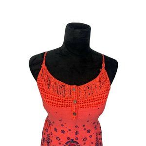 Free People Boho Coral Benji Floral Printed Beaded Crochet Mini Dress Si…