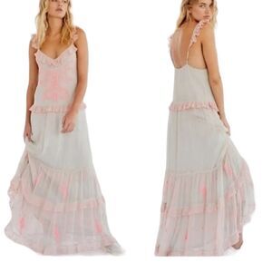 Free People Coralie Embroidered Tiered Maxi Dress Women’s Cream Size Small