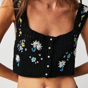 Free People Boho Cottagecore Wildflowers Embroidered Sweater Tank Vest sz XS