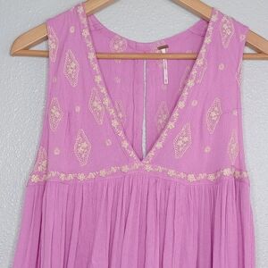 Free People Boho Diamond Embroidered Sleeveless Fairycore Tunic Top