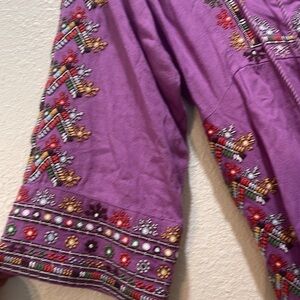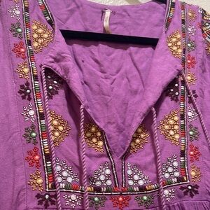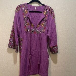 Free People Boho Dress Women Size XS Small Embroidered Linen Mini Dress
