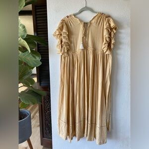 Free People Boho Embroidered Maxi Dress Gauze Flowy Beige Tan Cream Neutral