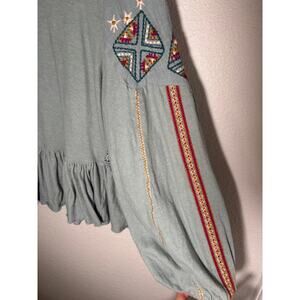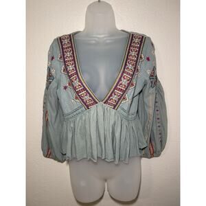 Add a touch of boho charm to your wardrobe with this stunning embroidered blouse from Free People. This top features: