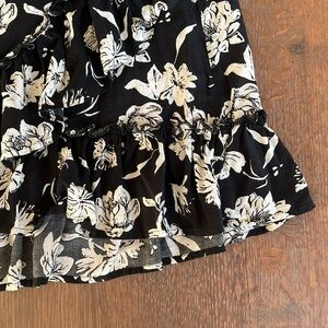Free People Boho Feminine Ruffle Mini Skirt Black White Floral Coquette Summer