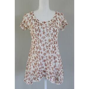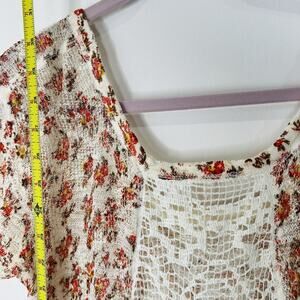 Free People Boho Floral Crochet Top Shirt Size L