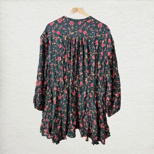 Free People Boho Floral Dress M Green Pink Long Sleeve Button Peasant Tunic