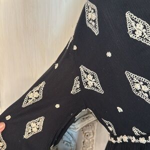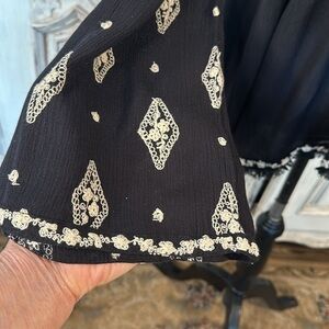 Free People Boho Floral Embroidered Oversized Top Folk Gypsy Gothic Witchy S/XS