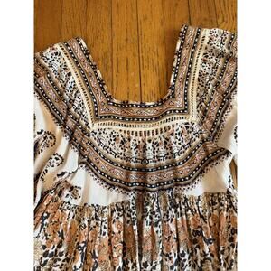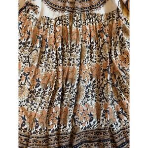 Free People Boho Floral Peasant Tunic Top Womens Extra Small Orange Blue Rayon