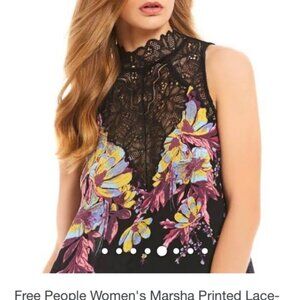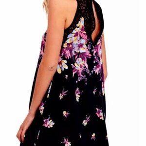 Free People Boho Floral Sleeveless Dress – Black Lace Trim, Size S