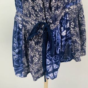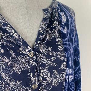 Double drawstring tie at side waist. Button down front closure. Tunic style. Long sleeve. Oversized fit