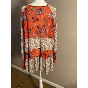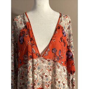 Free People Boho Flowy Dress Teierd Ruffles Semi-Sheer Floral Sz S Oversized