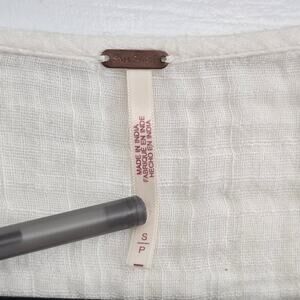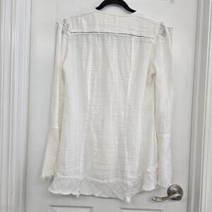 Free People Boho Fringe Hem V-Neck Blouse Sz S Flared Sleeve Ivory Peasant Goth