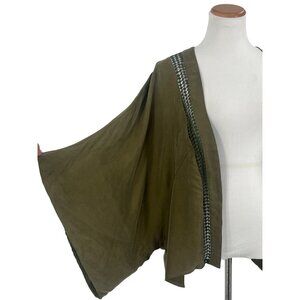 Free People Olive Green Boho Flowy Open Front Kimono Jacket Throw Duster