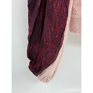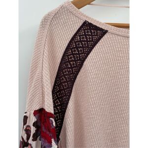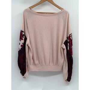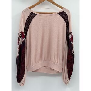 Free People Boho Knit Top Long Balloon Sleeve Women Medium Pink Floral