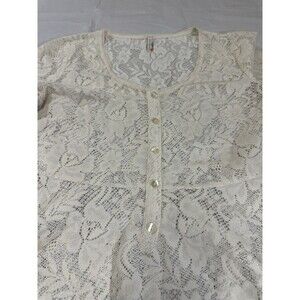 Free People Boho Lace Mesh Crochet Buttoned XS Festival Top HTF Cream L. Sleeve