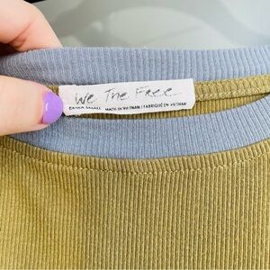This super soft effortless pull-on tee from our We The Free collection features lace and embroidery at shoulders designed in a multi-fabric oversized slouchy silhouette.