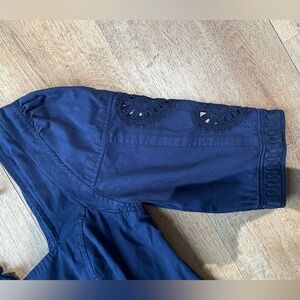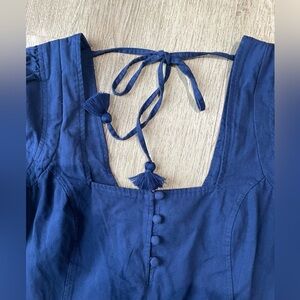 Free People Boho Navy Puff Sleeve Mini Dress Tassel Tie Embroidery Size S Bali