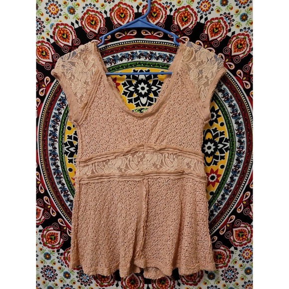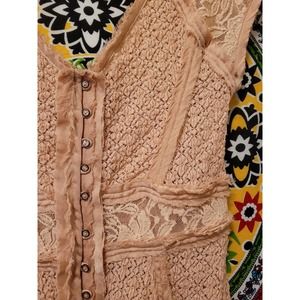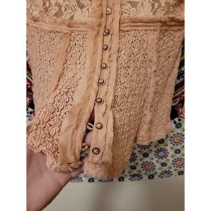 Free People Boho Peach Small Sleeveless Lace Blouse Button Back Urban Outfitters.