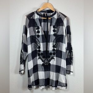Free People Boho Plaid Tunic Embroidered Beaded - Swim cover up Size XS