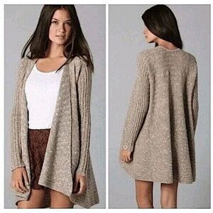 Free People Boho Ribbed Wool Blend Open Front Cardigan Sweater Knit