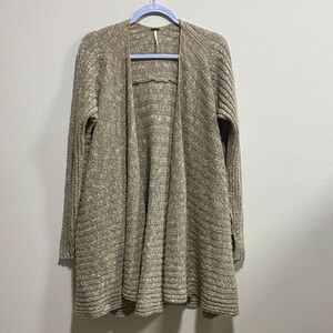 Free People cardigan, marled beige sweater, open front knit, cozy ribbed cardigan, boho layering piece, fall knitwear, soft neutral cardigan, Free People M, relaxed fit cardigan, casual chic