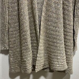 Cozy Ribbed Knit Open Cardigan – Marled Beige