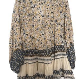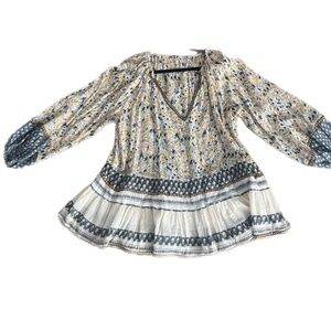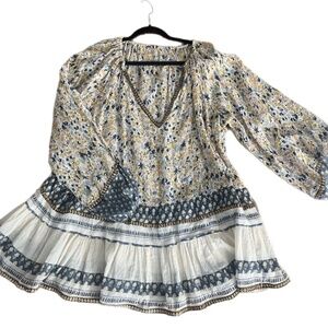 Free People Boho Ruffle Hem Flowy Babydoll Tunic Beachy Floral Top